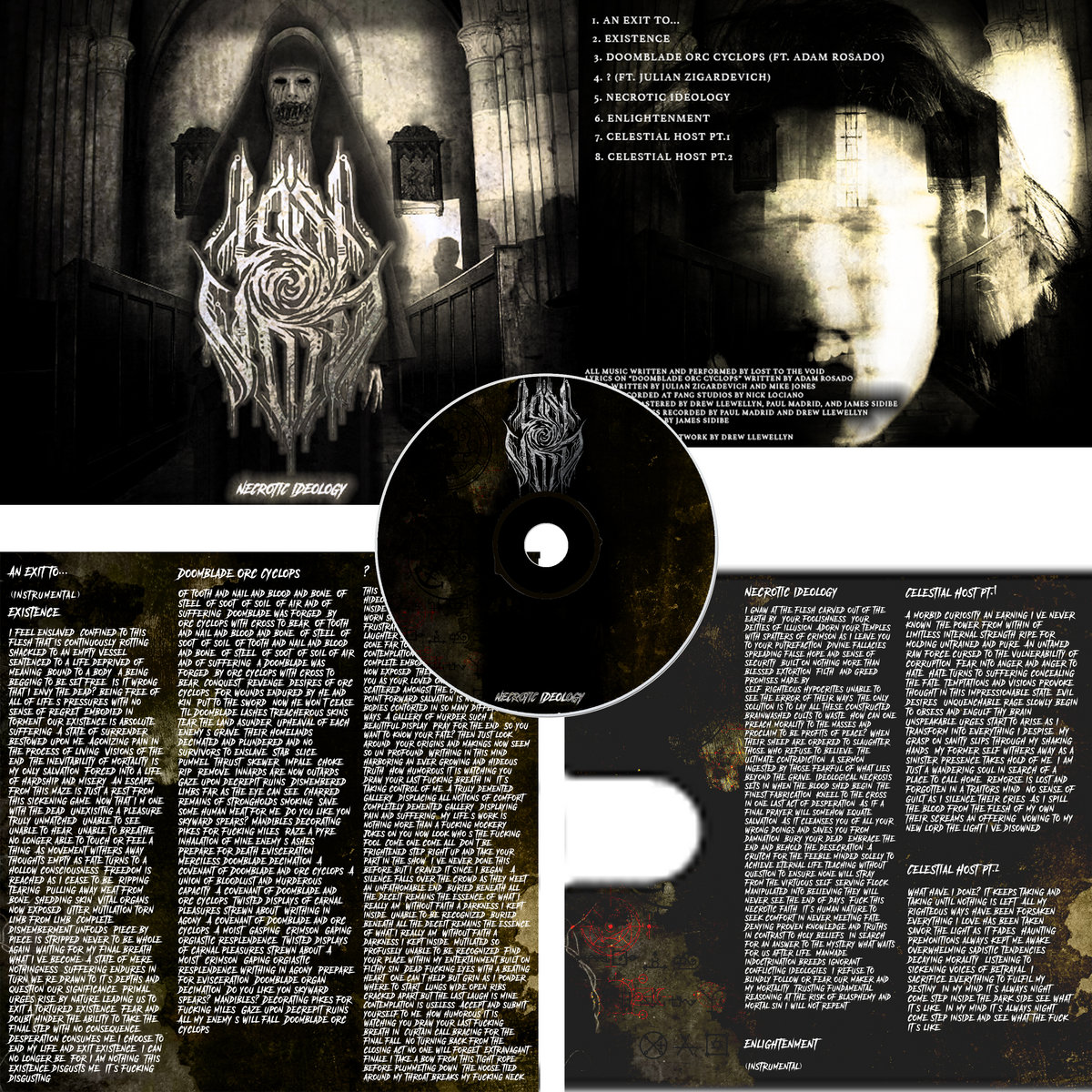 self-righteous hypocrites unable to see the error of their ways. The only solution is to lay all these constructed brainwashed cults to waste. How can one preach morality to the masses and proclaim to be profits of peace? When their sheep are ordered to slaughter those who refuse to believe. The ultimate contradiction, a sermon ingested by those fearful of what lies beyond the grave. Ideological necrosis sets in when the blood shed begin. The finest fabrication. Kneel to the cross in one last act of desperation. As if a final prayer will somehow equate salvation. As it cleanses you of all your wrong doings and saves you from damnation. Bury your dead, embrace the end and behold the desecration. A crutch for the feeble minded solely to achieve eternal life teaching without question to ensure none will stray from the virtuous self-serving flock. Manipulated into believing they will never see the end of days. Fuck this necrotic faith. It’s human nature to seek comfort in never meeting fate. Denying proven knowledge and truths in contrast to holy beliefs. In search for an answer to the mystery what waits for us after life. Manmade indoctrination breeds ignorant conflicting ideologies. I refuse to blindly follow or fear our maker and my mortality. Trusting fundamental reasoning at the risk of blasphemy and mortal sin I will not repent.